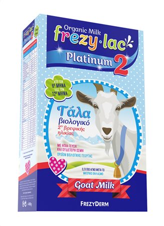 Το FREZYLAC PLATINUM 2 είναι βιολογικό κατσικίσιο γάλα σε σκόνη, κατάλληλο για βρέφη από τον 6° μήνα στο πλαίσιο μιας μεικτής διατροφής.